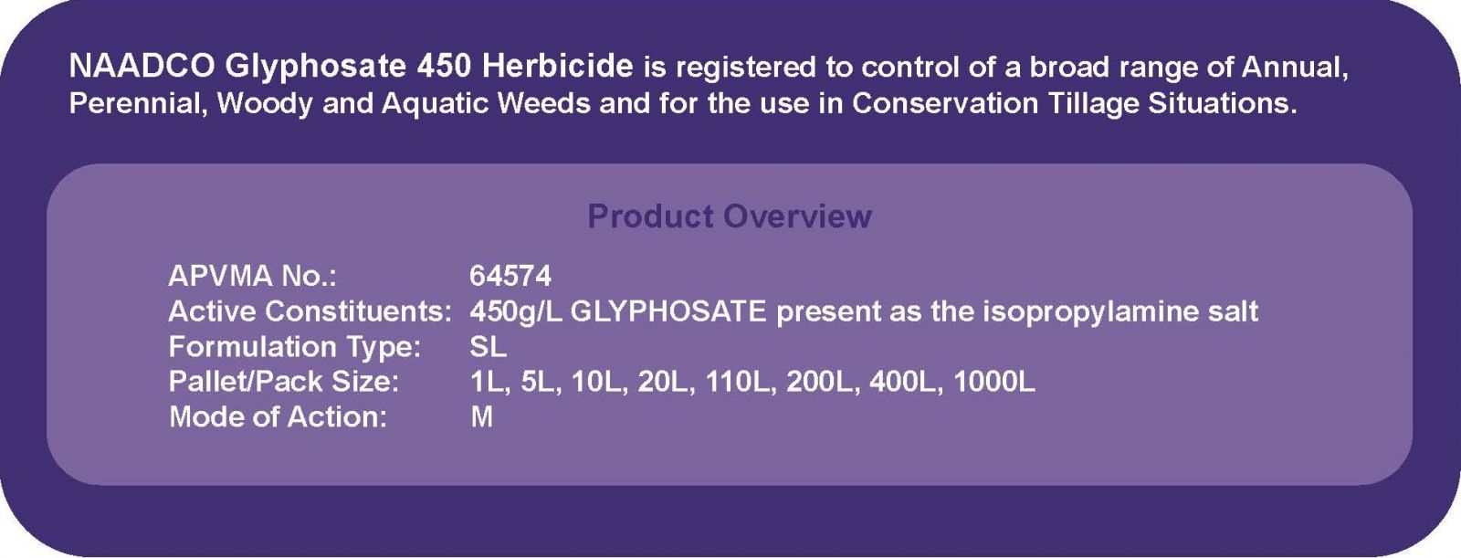 A non-residual herbicide for the control of a broad range of Annual, Perennial, Woody and Aquatic Weeds and for the use in Conservation Tillage Situations.